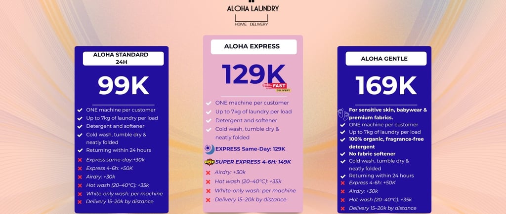 If you need 24-hour laundry, same-day return, or super express 4–6 hour service in Saigon, just send us a message.
